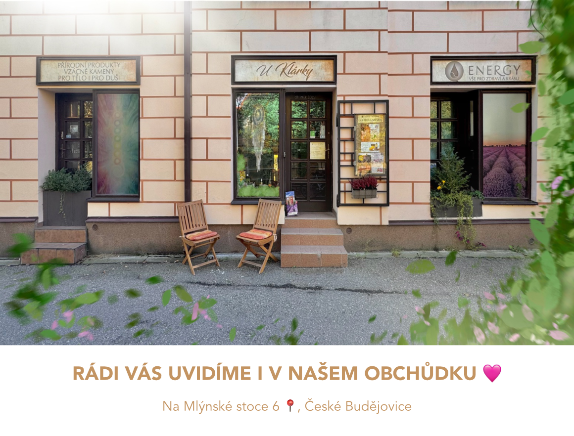 Dále zde najdete související sortiment z našeho Obchodu U Klárky, jako minerály, aromaterapii Hanna Maria, bylinné tinktury Serafin či tarotové karty.
