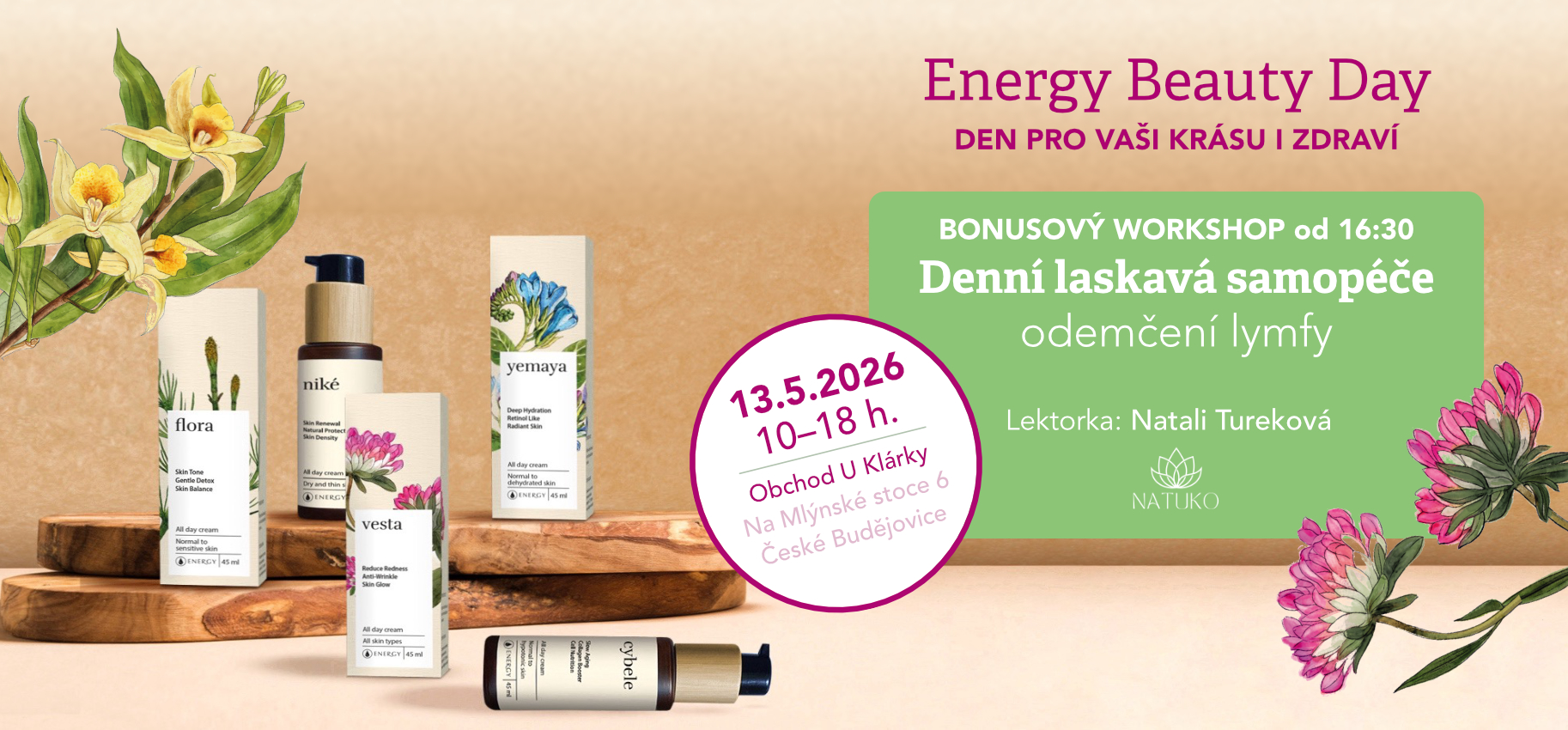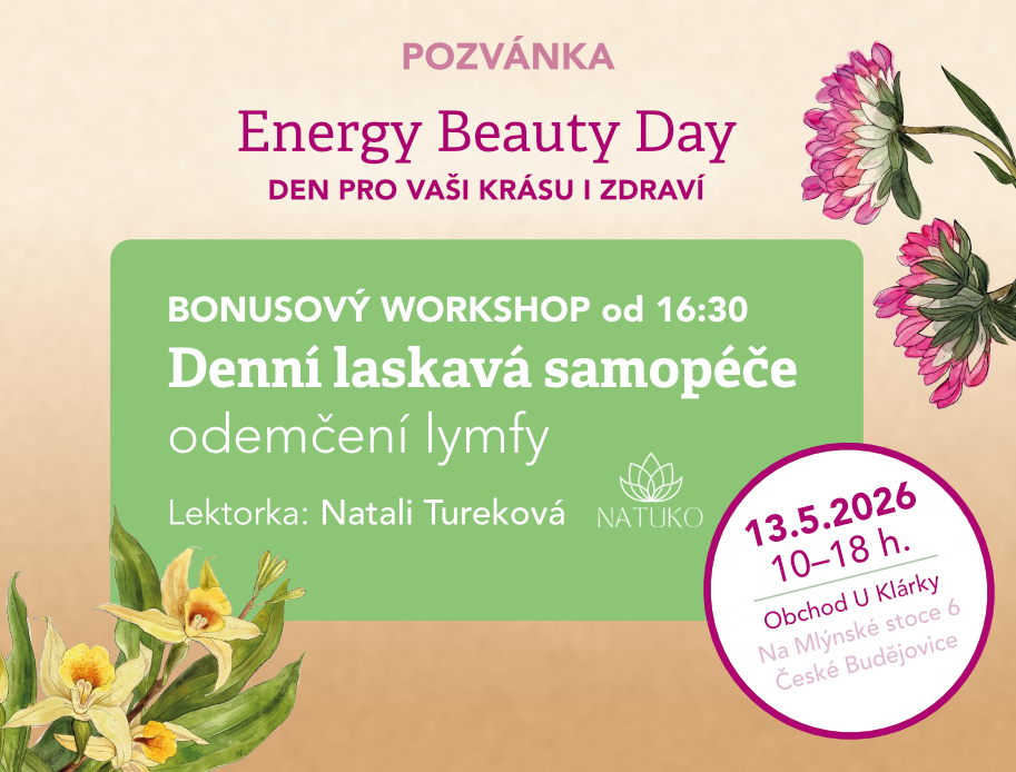 Jsme zejména kamenný obchod a Klub Energy v Českých Budějovicích. Najdete zde kompletní sortiment české společnosti Energy, který tvoří ucelená nabídka vysoce kvalitních a přírodních produktů z oblasti doplňků stravy a přírodní kosmetiky. Jsou sestaveny podle principů tradiční čínské medicíny s využitím nejnovějších poznatků z dalších oblastí přírodního léčení.