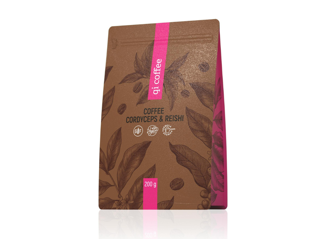 QI coffee je kvalitní rozpustná káva obohacená o extrakty tradičních čínských hub. Obsažený kofein podporuje čilost a soustředění a zajišťuje maximální výkon a vytrvalost. Lesklokorka lesklá zvyšuje imunitu a má pozitivní vliv na zdraví oběhové soustavy a hladinu cholesterolu v krvi.
