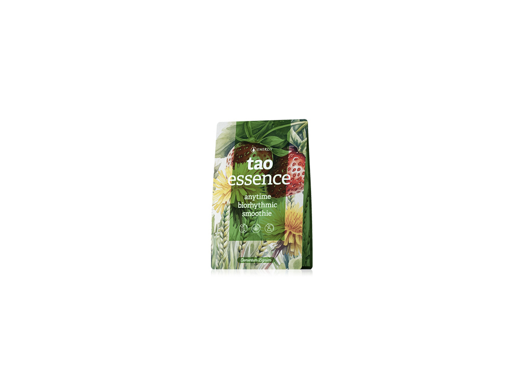 Tao essence je čistě přírodní, harmonizační a biorytmické smoothie sestavené podle principů tradiční čínské medicíny podporující očistu organismu, a regeneraci jater i žlučníku. Harmonizuje trávicí orgány a podporuje krvetvorbu. Respektuje nutriční potřeby i klíčové biorytmy organismu a našemu tělu dodává co nejšetrněji připravené a vzájemně sladěné esenciální ingredience. Všechny suroviny jsou pečlivě vybrané s důrazem na kvalitu i způsob zpracování, kdy byla zachována jejich ryzí čistota a živá podstata. Smoothie je naprosto bez chemie, aditiv a konzervantů.