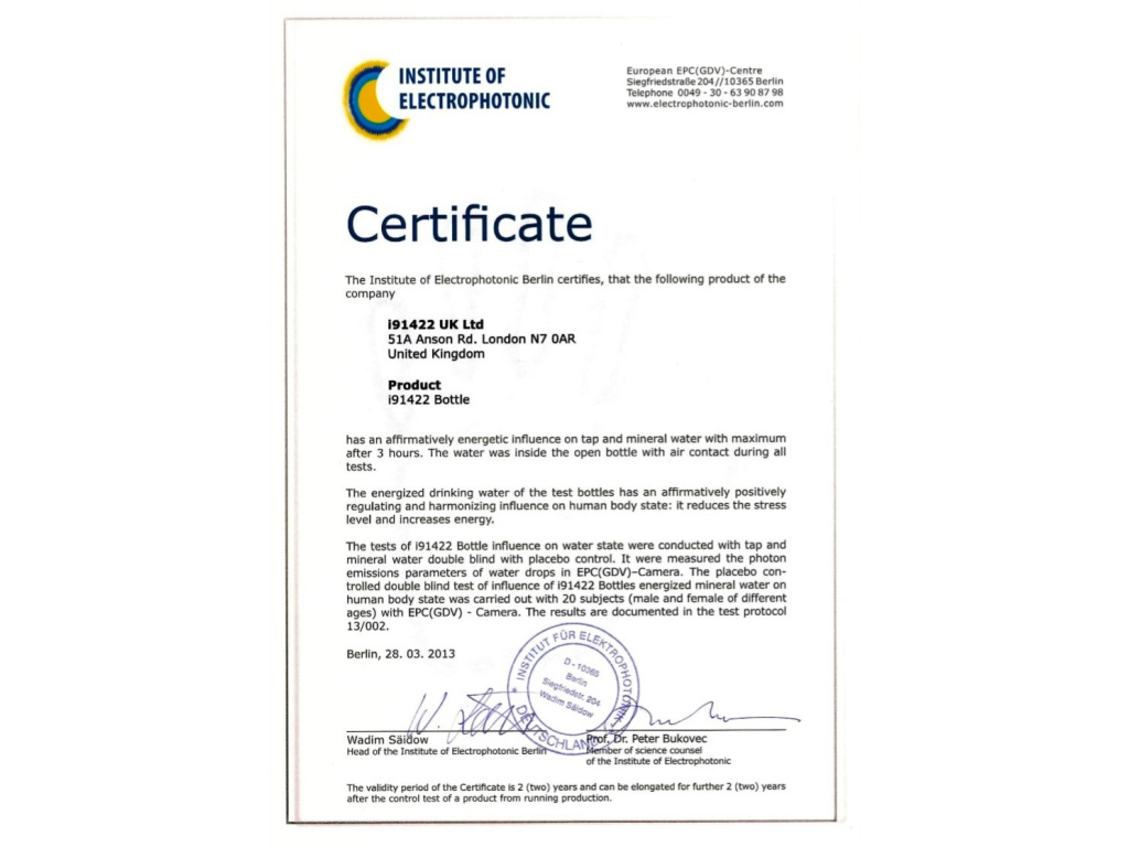 Skleněná lahev s funkcí harmonizování vody. Díky technologii Poznik (TP) a chromoterapii obnovuje vitalitu vody a ta díky ní chutná jako z horské studánky a je obohacena o bioinformace. Chuť vody se skutečně změní a je znát její "hladkost" a "sladkost". Pití této vody přenáší pozitivní informace do těla a nastoluje opět rovnováhu tam, kde je potřeba. Informační štítek je umístěný uprostřed každé lahve a jednotlivé lahve jsou rozděleny podle barev energetických center lidského těla. Účinnost technologie TP byla potvrzena Berlínským institutem elektrofotoniky, který potvrdil svými výzkumy účinnost vody z těchto informovaných lahví. Viz. certifikát ve fotogalerii produktu.
