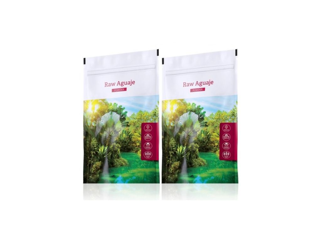 Doplněk stravy. Kombinace dvou zelených potravin Raw Aguaje caps se slevou.