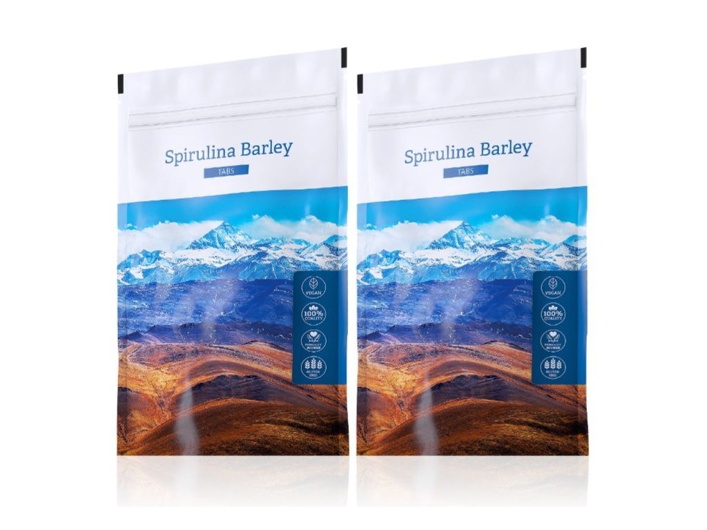 Doplněk stravy. Kombinace dvou balení Spirulina Barley tabs (ječmen a chlorella) se slevou.
